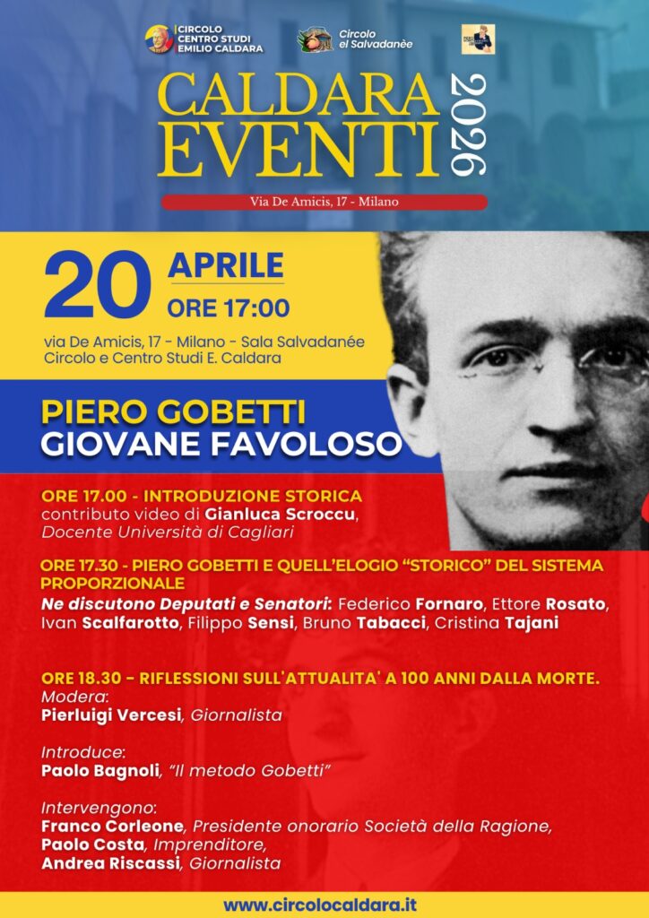 “Piero Gobetti Giovane favoloso” – Milano, Circolo e Centro Studi E. Caldara, 20 aprile ore 17:00